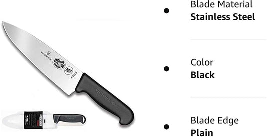 Victorinox Swiss army, Fibrox Straight Edge Chef's Knife, 8-Inch, Black, With Victorinox Cutlery BladeSafe for 8-Inch to 10-Inch Knife Blades. Combo pack