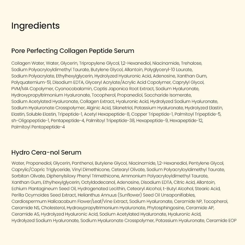 - 🎨 WHAT’S INSIDE (BY SKIN NEED): Collagen Peptide—plumping hydration & firmer-looking bounce; Cera-nol (Ceramide + D Panthenol)—calming, barrier-supporting care; Sea Kelp—lightweight fresh oil-balancing hydration; Vita Niacinamide—clear & even-tone look.