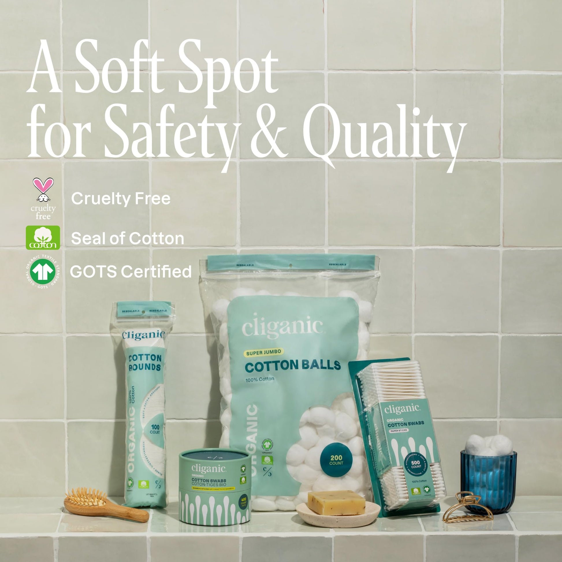 Cliganic Premium Cotton Rounds for Face (300 Count) - Makeup Remover Pads, Hypoallergenic, Lint-Free | 100% Pure Cotton