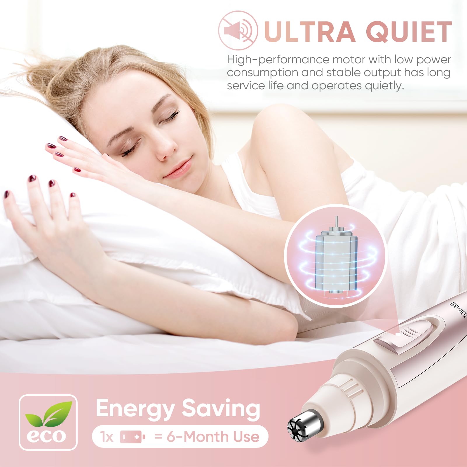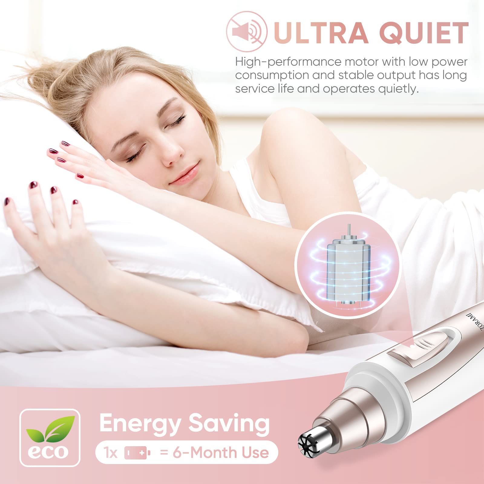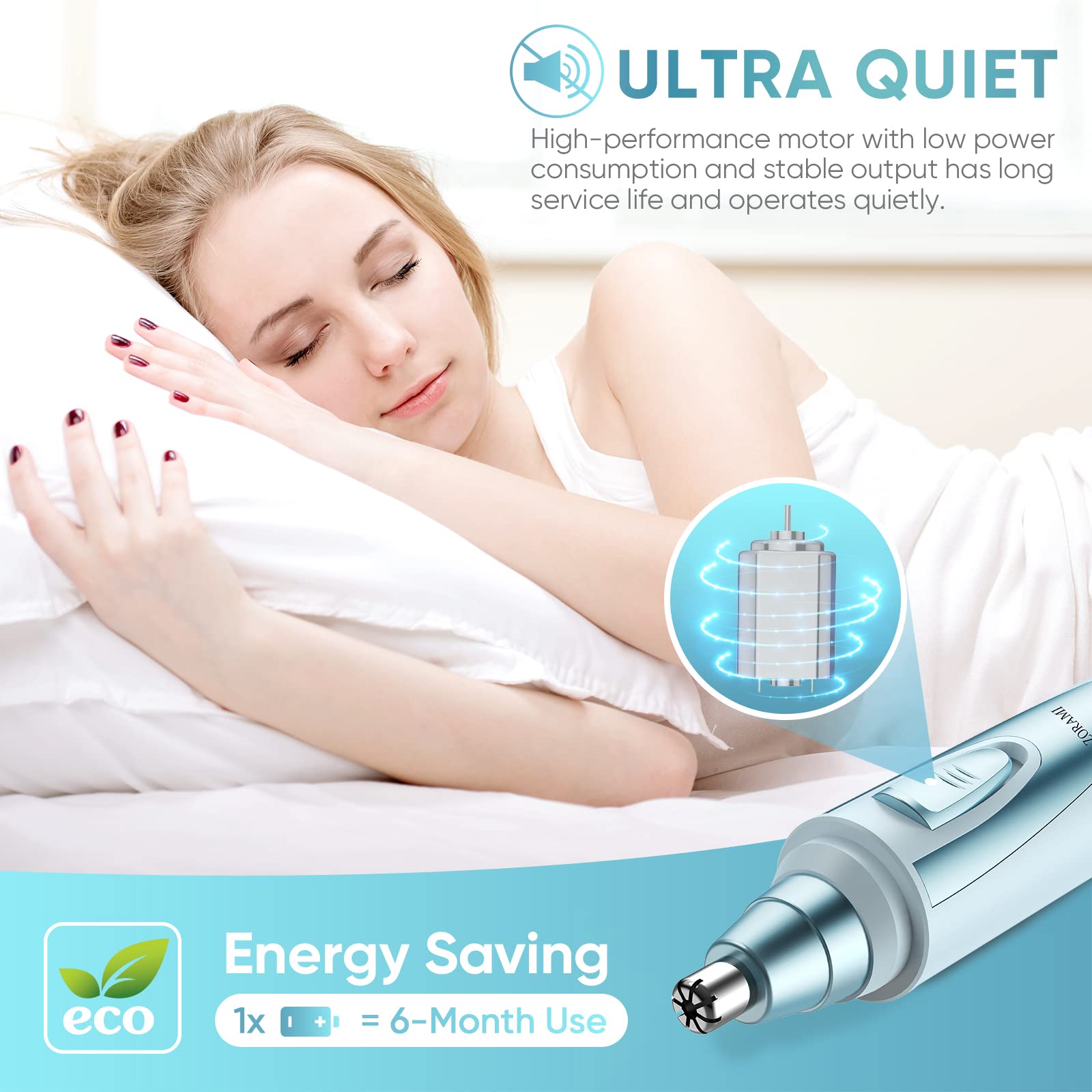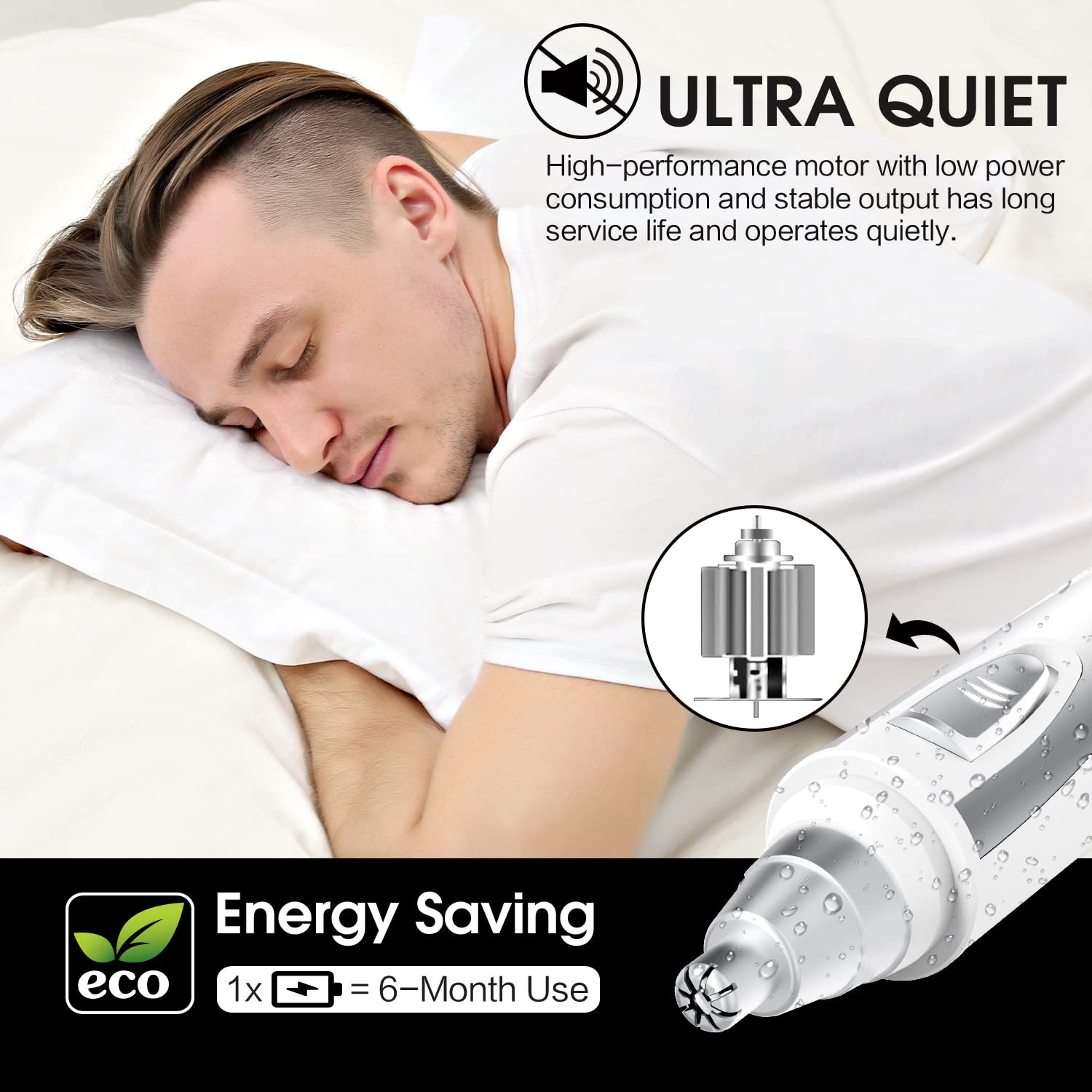 - Energy-Saving & Whisper-Quiet Operation: The upgraded motor is more powerful but less power-consuming by 5%. 1pc AA battery (NOT included) can run for more than 6 months for 5mins’ of use at a time. This nose trimmer is suitable for road trips and travel. With operating noise less than 50db, use the nose hair clippers freely.