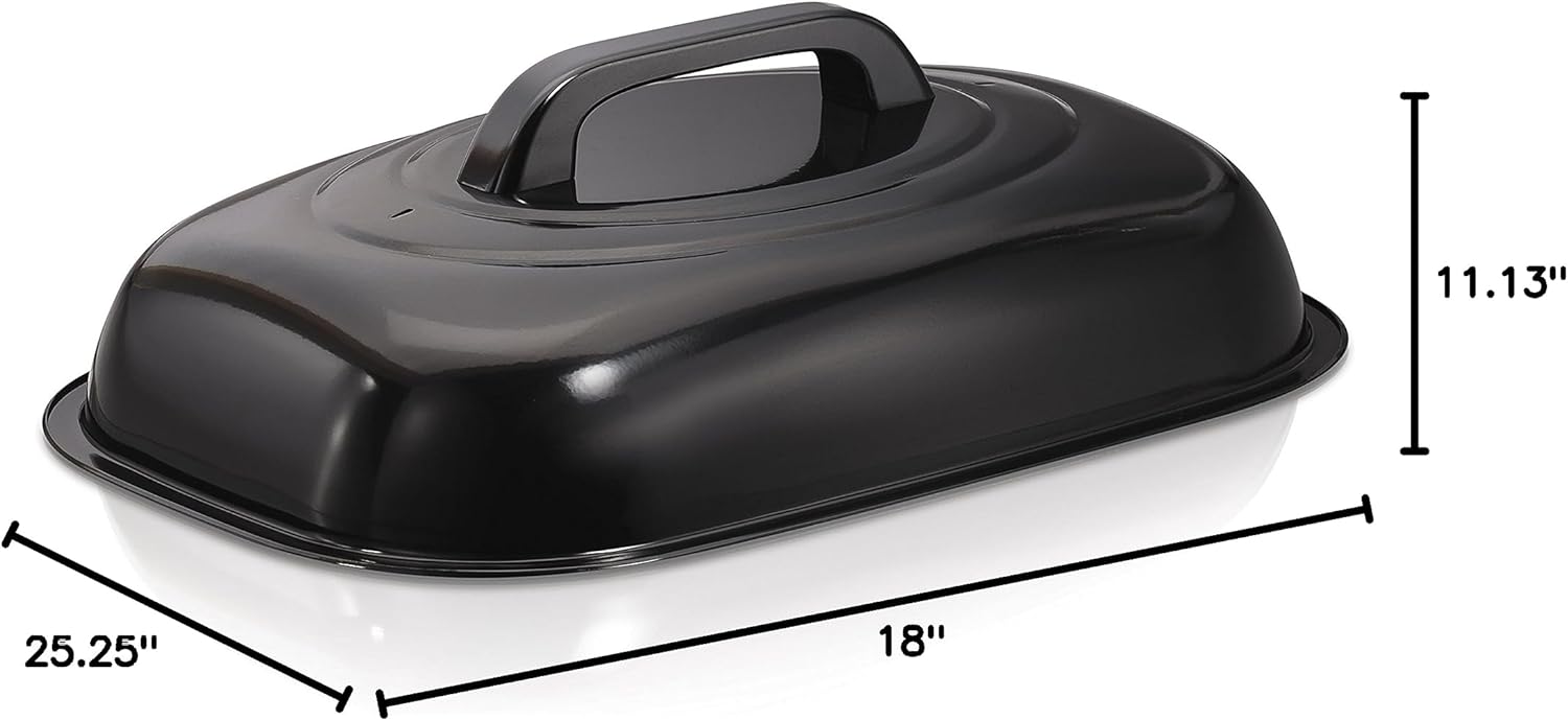 The Hamilton Beach 28lbTurkey Roaster Oven fits a 28lb turkey, making it perfect for the holidays. Its 22-quart capacity allows you to double your oven space to cook more foods faster. With this cooking oven, you can roast moist and tender beef, turkey, chicken and ham, or bake delicious potatoes, cakes, desserts and breads. It is convenient for countertop cooking for stews, soups and side dishes. The Hamilton Beach 28-Pound Turkey Roaster Oven attractive design goes from kitchen to buffet for easy serving. Its pan, made of an enamel-on-steel interior, is easily removed for easy cleanup. The lift-out rack lets you easily remove large items from the oven after cooking, giving you an easier way to transfer your dishes to cooling racks or plates as needed.