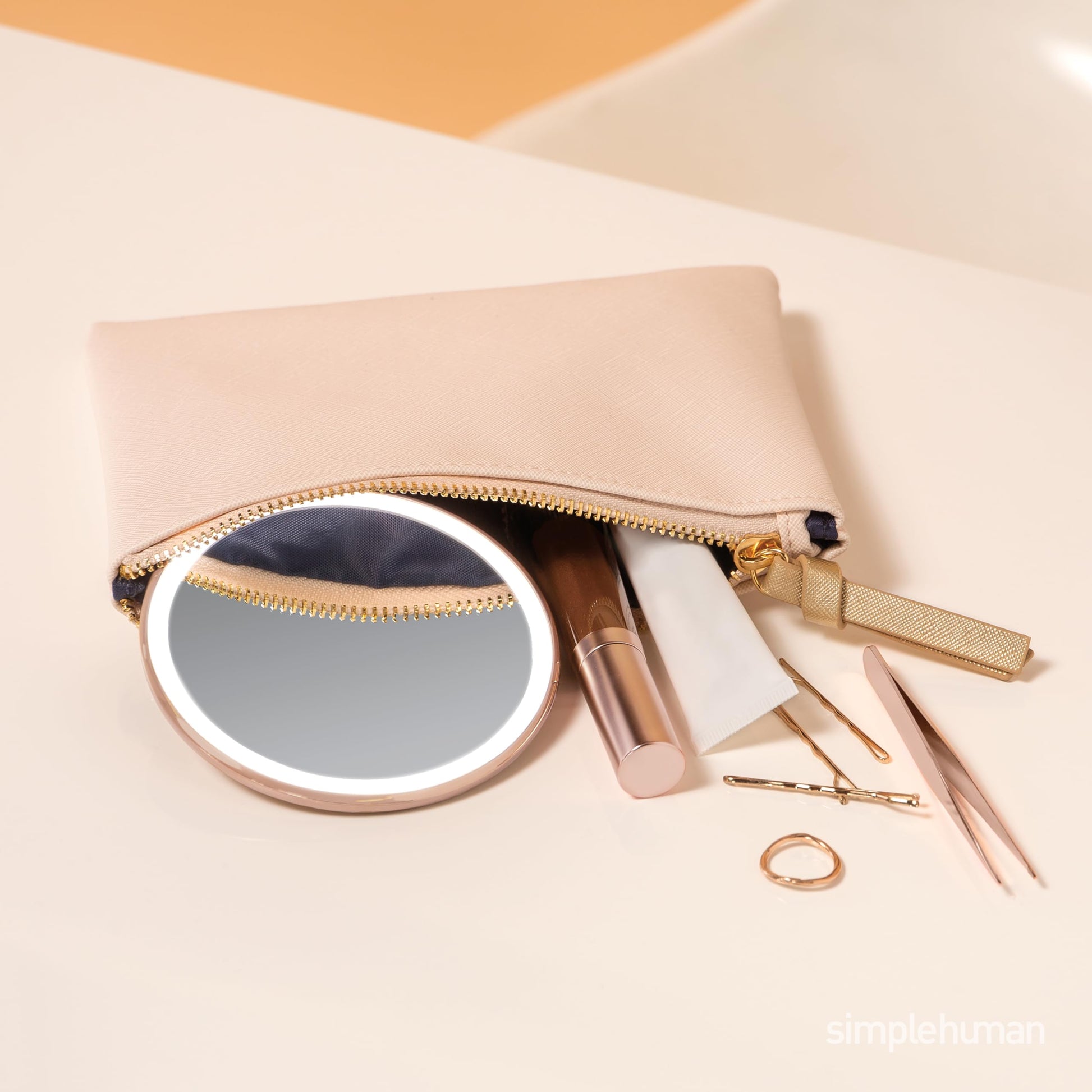 - automatic on/off: The light turns on automatically as you take the sensor mirror compact out of its smart pouch and turns off when you put it away again.