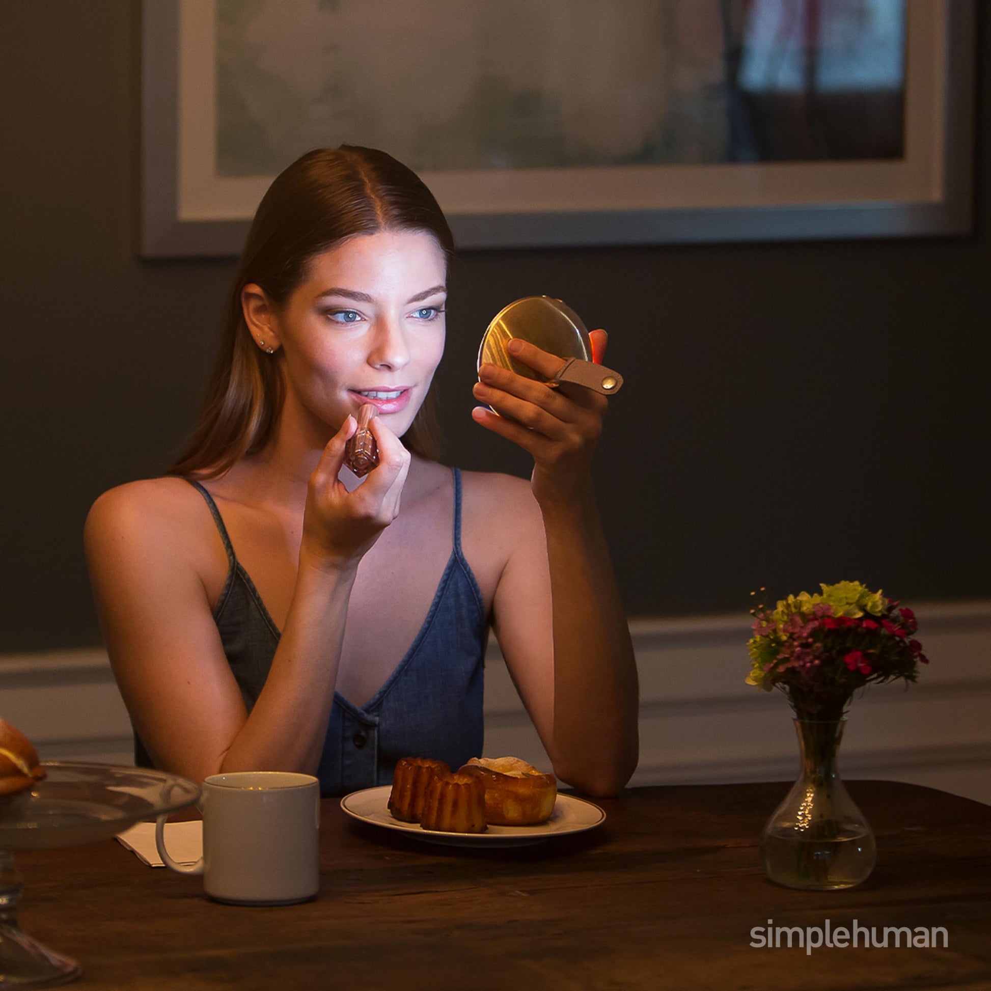 simplehuman Sensor Mirror, Lighted Compact Makeup Magnifying Mirror with Light, Round, Travel Size, Black Stainless Steel
