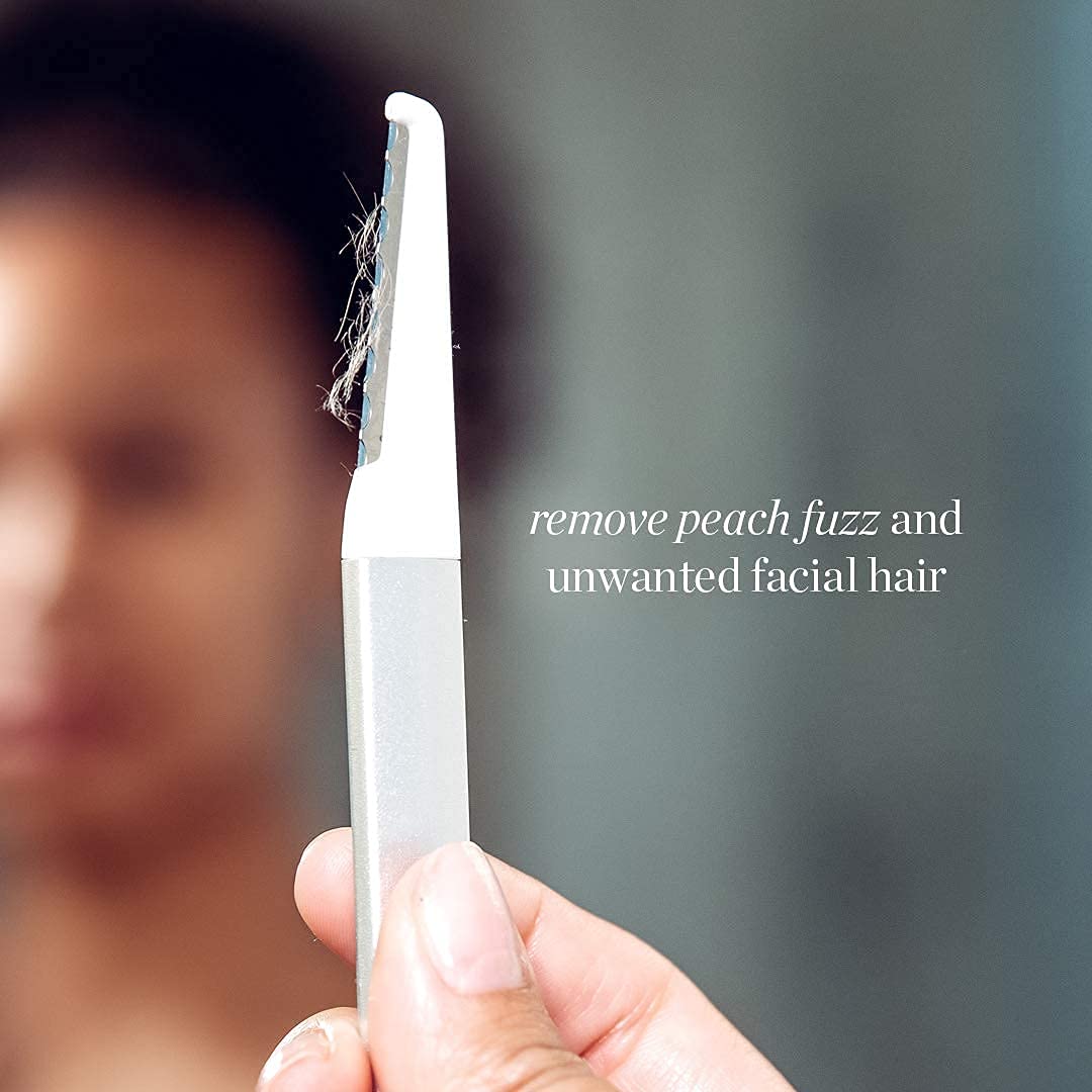 - Smooth, Refined Finish - Gently removes dead skin cells and fine facial hair to create a soft, glowing surface that preps skin for flawless makeup application; includes 1 replaceable razor head and requires no batteries or charging.