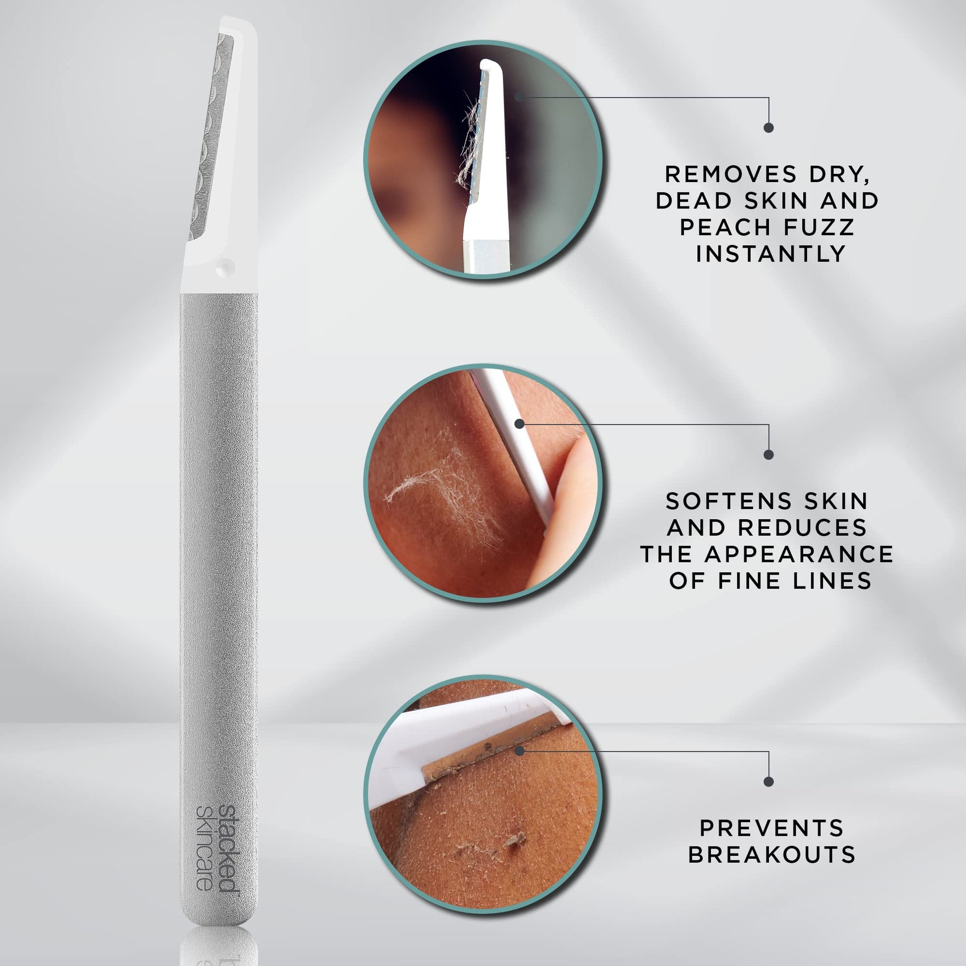 StackedSkincare Dermaplane Razor for Women Face - Professional Facial Razor, Non-electric Face Shaver for Women - Eyebrow Razor & Dermaplaning Tool for Face Exfoliation - Includes Handle & Blade