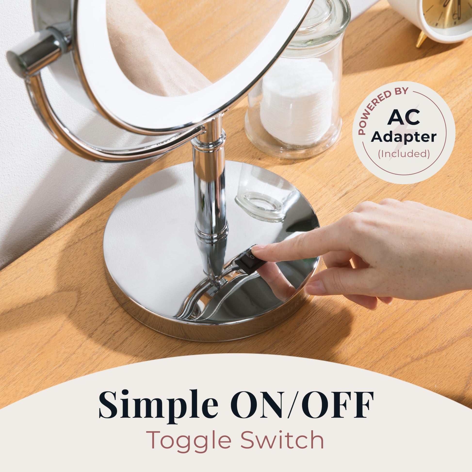 - POWERFUL LED LIGHTING - The Laguna mirror features a simple on/off switch operation for its powerful, energy-efficient LED lighting, providing bright, consistent illumination with minimal energy consumption, and is conveniently powered by the included AC adapter for uninteruped use, making it an easy-to-use and eco-friendly addition to any vanity setup.
