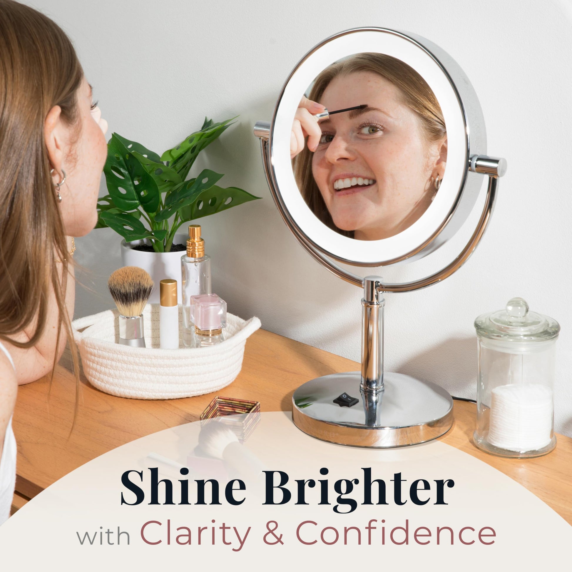 - REFLECTION - The reflective mirror glass, measuring 7 inches in diameter, is complemented by a 9-inch lighted head, which beautifully encircles the mirror with bright and even lighting for detailed makeup application and grooming, while offering the perfect balance between size and functionality for users seeking precision and clarity.